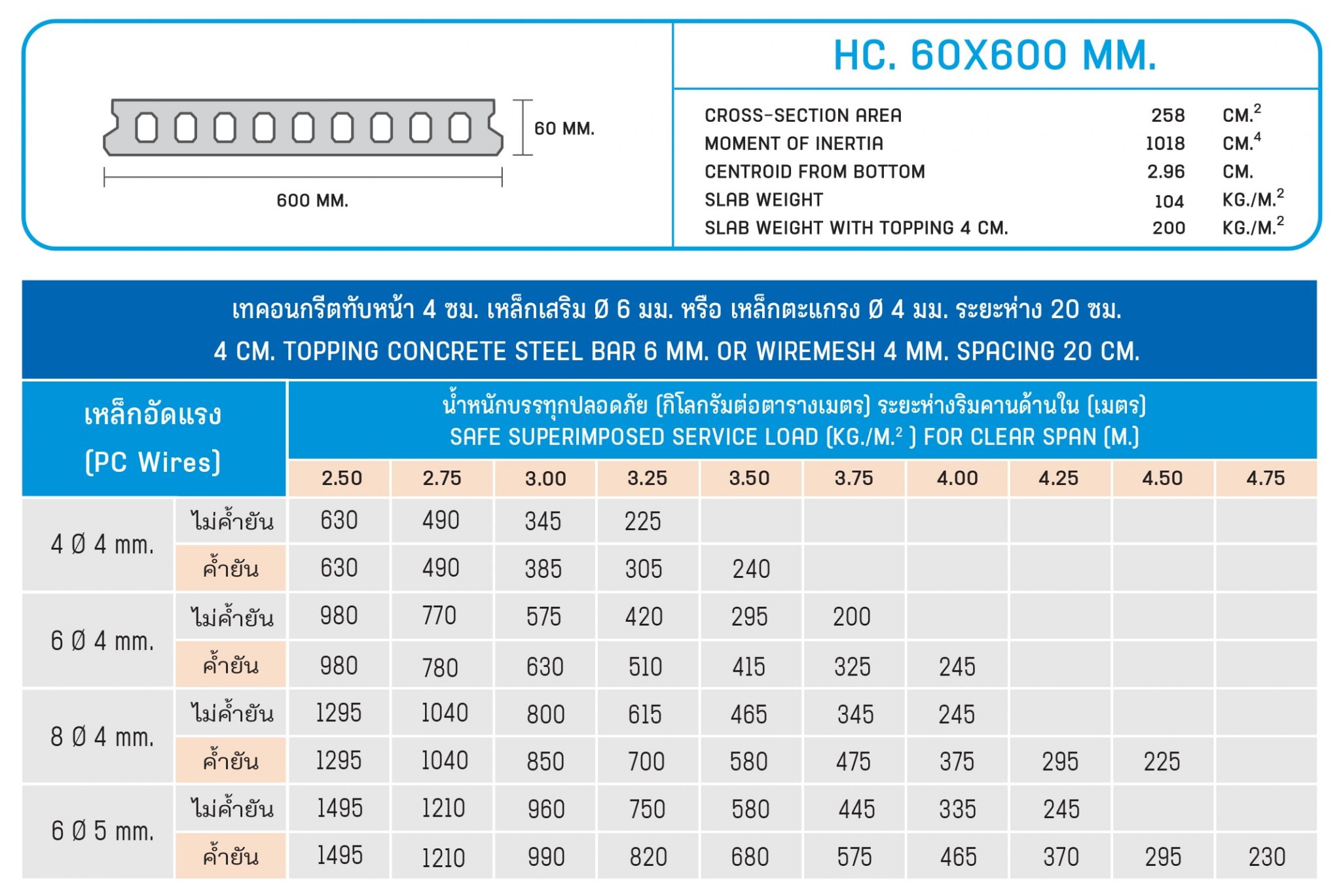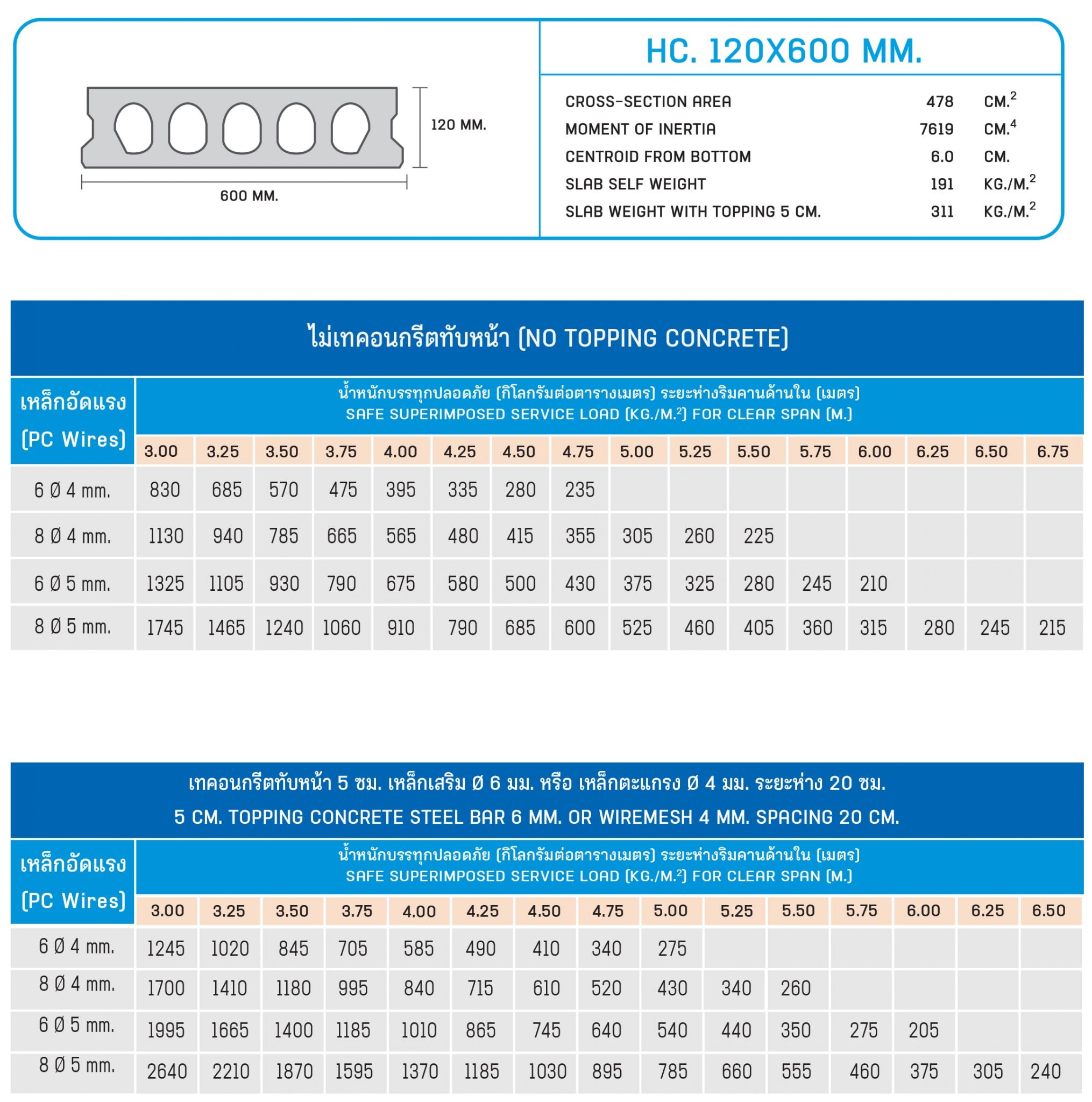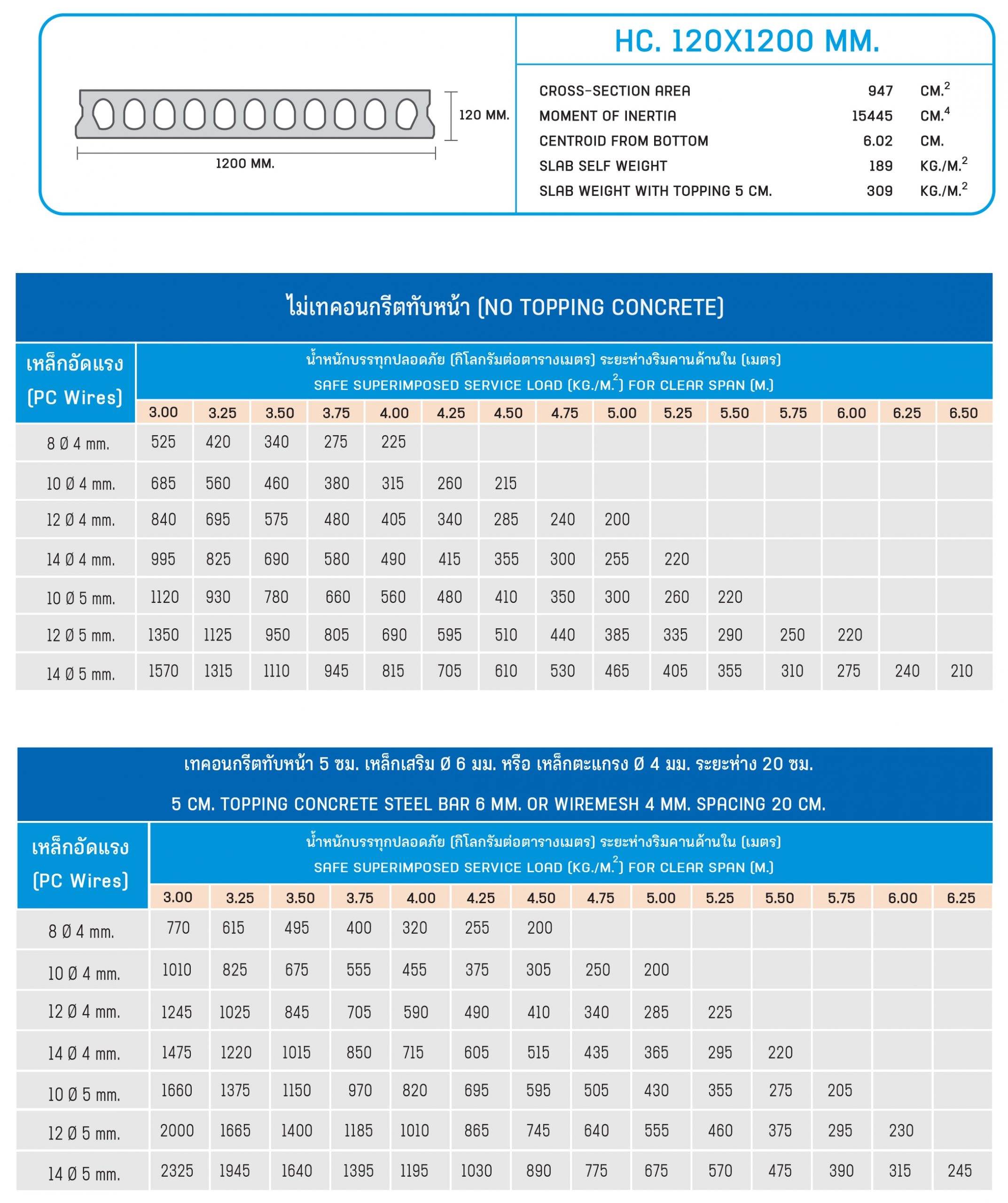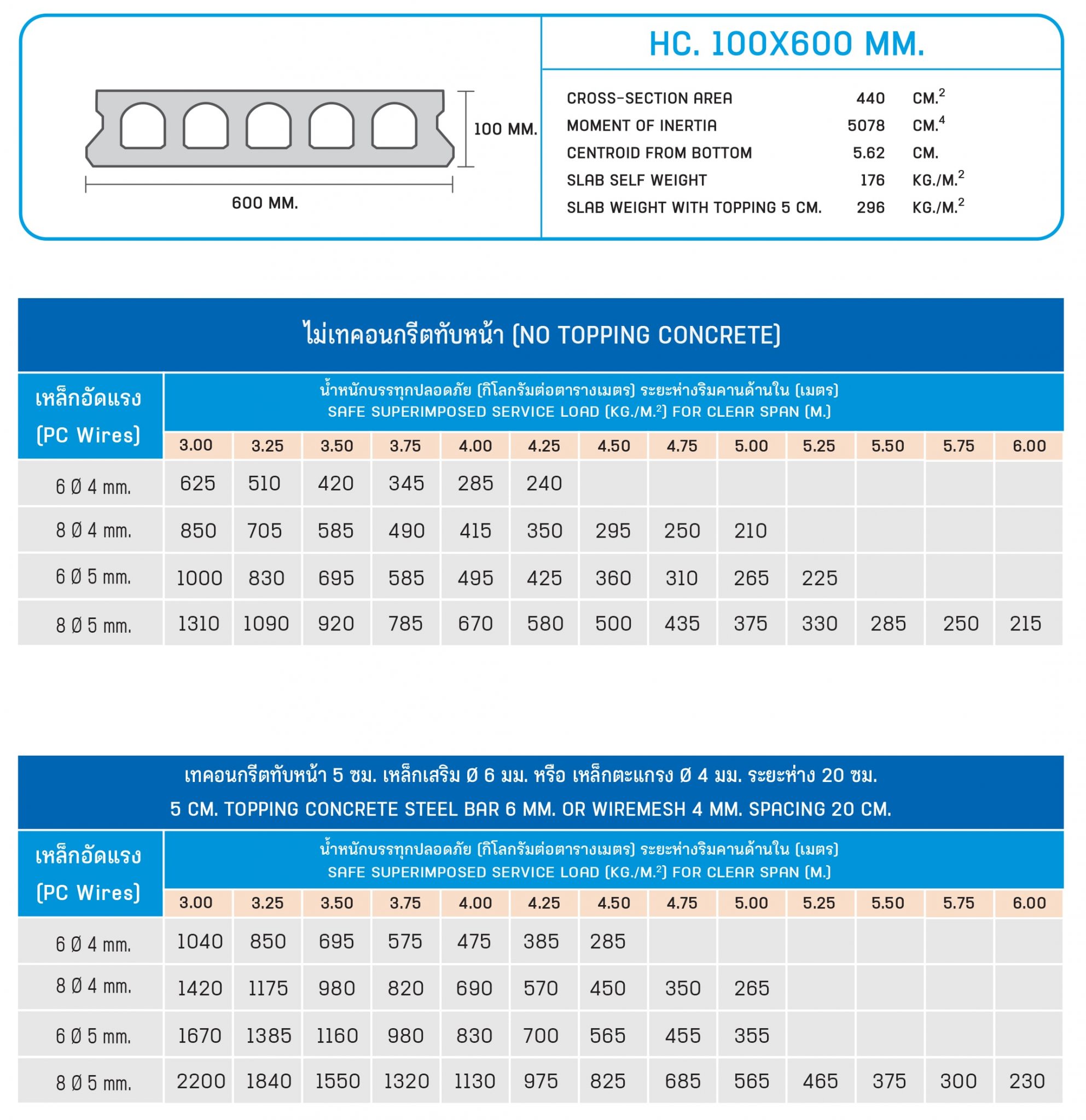 6. เป็นแผ่นพื้นสำเร็จรูปชนิดรูกลวง เสริมด้วยลวดเหล็กอัดแรงมาตรฐาน ASTM ใช้เป็นโครงสร้างพื้นอาคารทั่วไป มีน้ำหนักเบาเมื่อเทียบกับแผ่นพื้นอื่นๆ