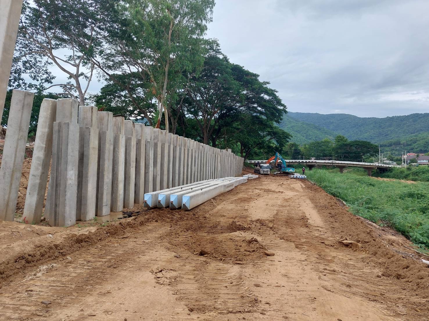 เสาเข็มเขื่อนคอนกรีตอัดแรง (Prestressed Concrete Dam Pile) คือเสาเข็มคุณภาพสูงที่ออกแบบมาเฉพาะสำหรับงานเขื่อน ป้องกันตลิ่งพัง และงานกันดิน โดยเฉพาะบริเวณพื้นที่น้ำไหลหรือเสี่ยงต่อการกัดเซาะ มีความแข็งแรง ทนทานต่อแรงดึงและแรงอัดสูง ทำจากคอนกรีตกำลังอัดประลัยไม่ต่ำกว่า 350 กก./ซม. พร้อมลวดเหล็กอัดแรง (PC Wire) ความมั่นคงสูง: เหมาะสำหรับงานโครงสร้างที่ต้องการความแข็งแรงเป็นพิเศษ ช่วยรองรับน้ำหนักและกระจายแรงได้ด ป้องกันการกัดเซาะ: เหมาะสำหรับติดตั้งในพื้นที่ที่เสี่ยงต่อการถูกกัดเซาะโดยน้ำ ลดการทรุดตัว: ช่วยเสริมความมั่นคงของดินบริเวณตลิ่งหรือเขื่อน มาตรฐานคุณภาพ: โดยปกติผลิตตามมาตรฐานกรมโยธาธิการและผังเมือง หรือมาตรฐานอุตสาหกรรม (มอก.)