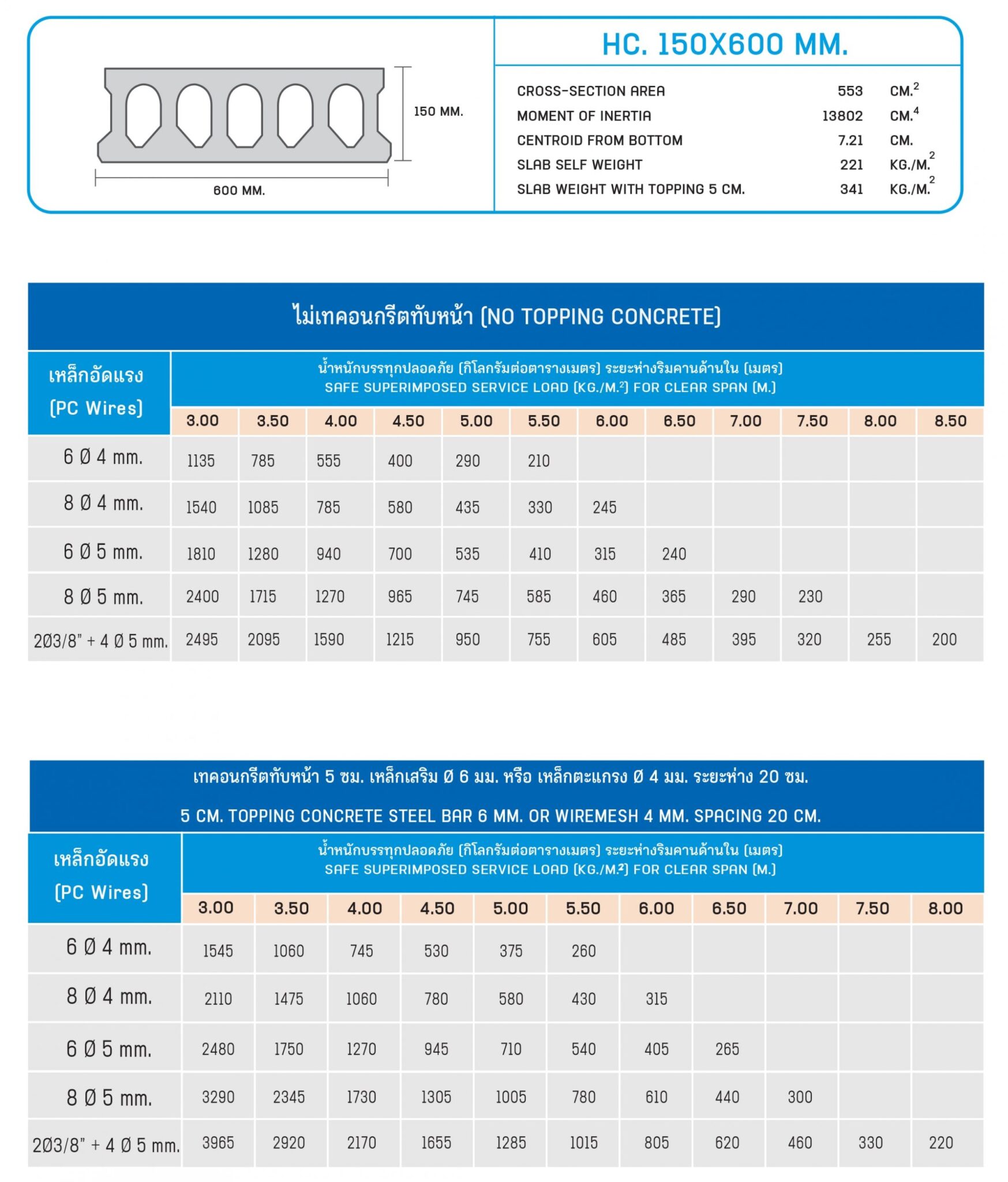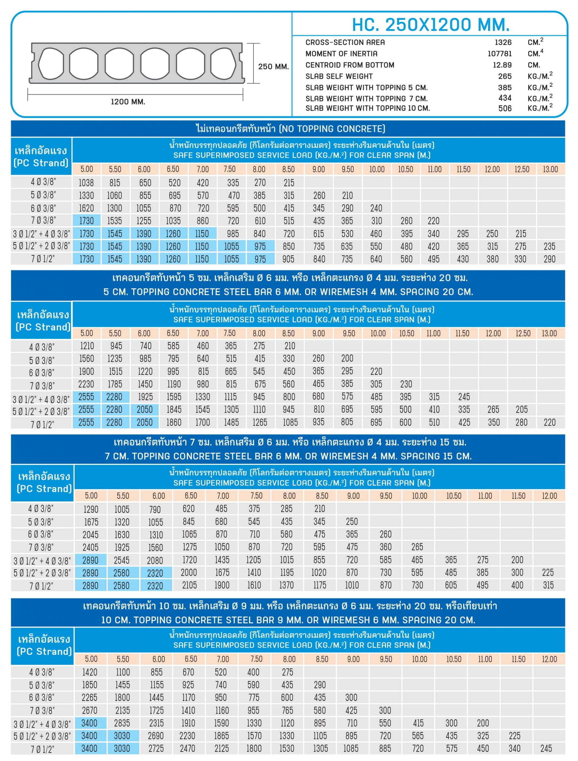 6. เป็นแผ่นพื้นสำเร็จรูปชนิดรูกลวง เสริมด้วยลวดเหล็กอัดแรงมาตรฐาน ASTM ใช้เป็นโครงสร้างพื้นอาคารทั่วไป มีน้ำหนักเบาเมื่อเทียบกับแผ่นพื้นอื่นๆ